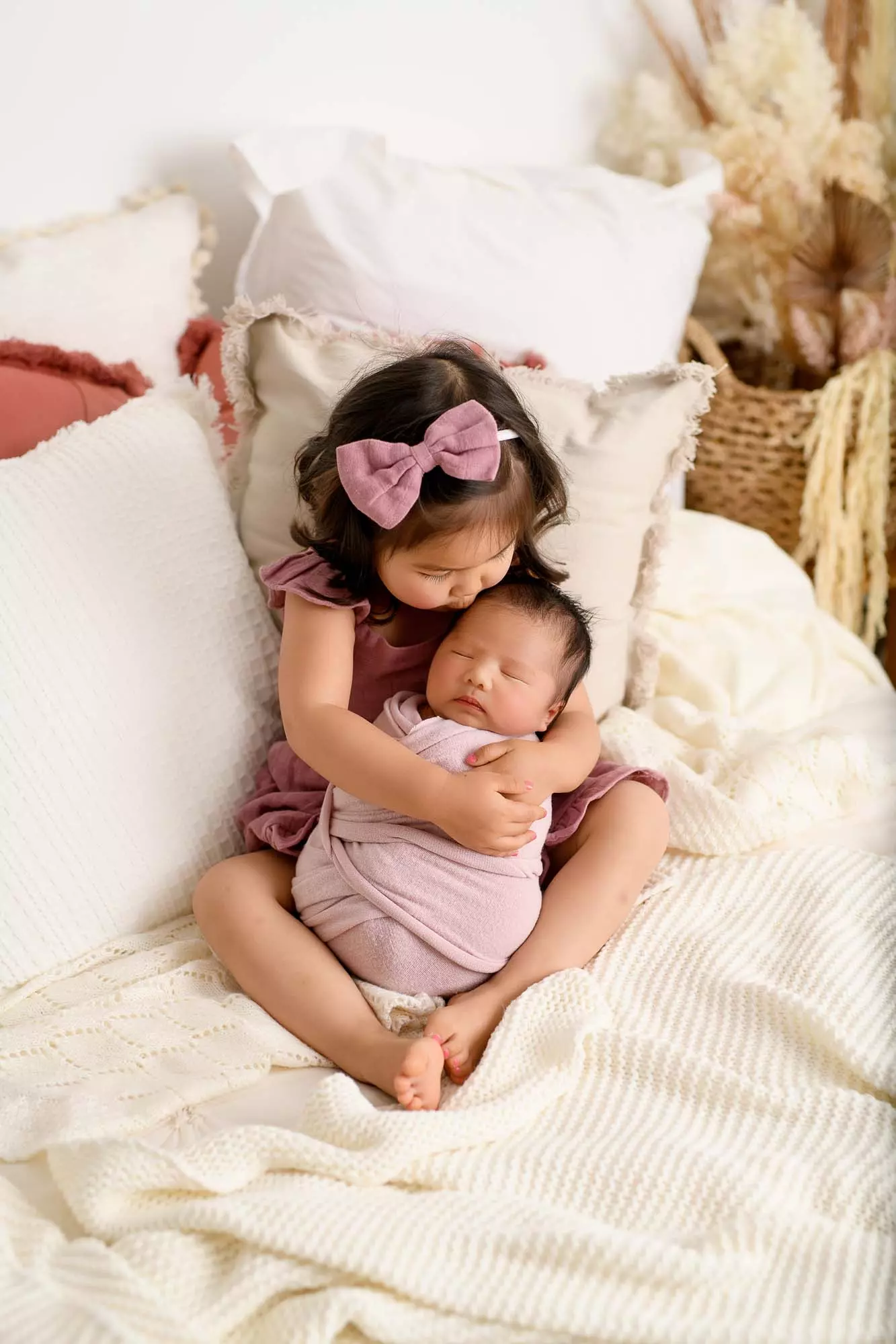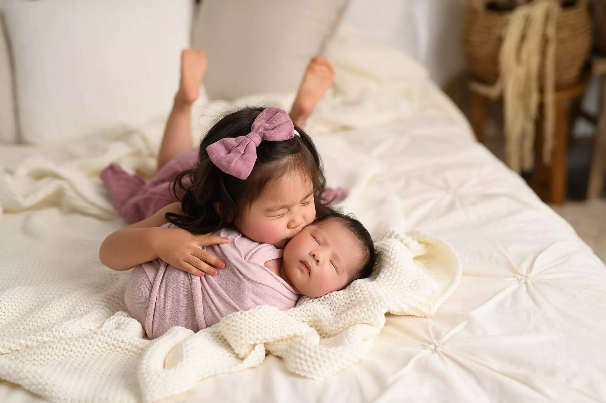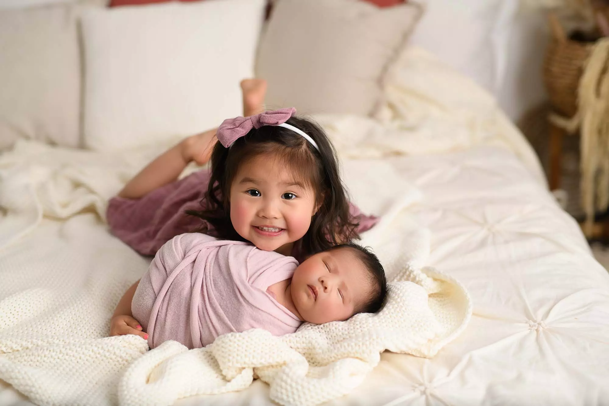 Lisa had let me decide on colours and set-ups for Charlotte, she just wanted to compliment the images we had for Chantelle, and I love how her newborn photos have turned out. I especially love the family shots on our relaxed bed set and how cute and grown is Chantelle!! It goes too fast!